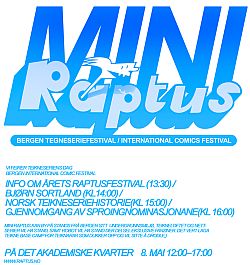 Mens man feiret den internasjonale Free Comic Book Day forrige lørdag, er Tegneseriens dag her i Norge 8. mai i år. I Bergen legger man opp til en tyvstart på tegneseriefestivalen Raptus på Tegneseriens dag. Da blir det et nytt MiniRaptus. Dette blir en dag i tegneserienes tegn på Det akademiske kvarter, der også høstens Raptus skal arrangeres.