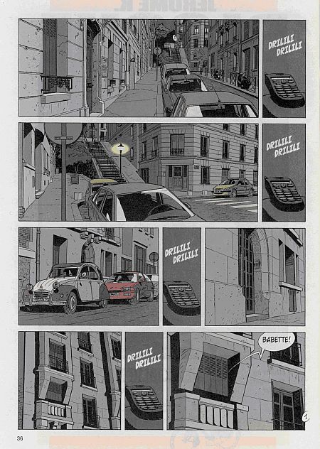 Gatene går til høyre på alle bildene, noe som letter leseretningen. Gatene er tomme for folk, og fargene på siden er duse, for å indikere at det er natt. Siden som helhet fungerer også bra. Når vi begynner øverst til venstre, får vi først døra til Jerome på venstre side som et startsted. Og i den siste ruten på siden får vi ropet på Babette som en liten cliffhanger.