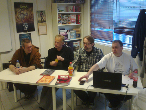 Kveldens første tema var serieskaperne selv. Kveldens Serietreff var kanskje tidenes mest distriktsvennlige, da ingen av serieskaperne bor i Oslo, og den Kristiansand-bosatte Roy er den mest urbane av de tre. Tore bor i Arendal, mens Tor Ærlig, etter eget utsagn, bor i “en liten øy i Grenlandsdistriktet”)