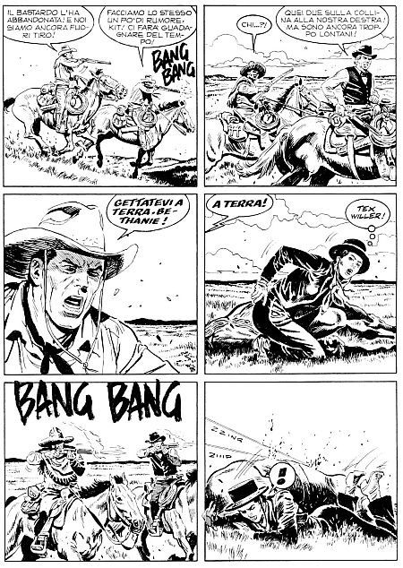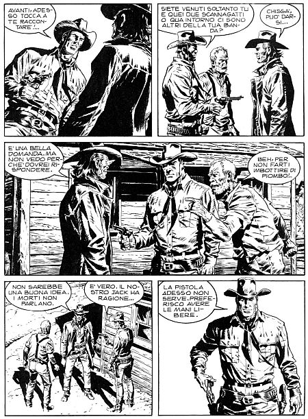 Muligens Jostein, men Watchmen er ikke en Western. Det jeg ville finne ut var hvorfor Tex ikke faller i like god jord som Blueberry, Red Kelly og noen få andre Wester-tegneserier, hos meg. Praten, og mange sier uten handling (ikke nødvendigvis action og skyting). Det er faktisk ikke nødvendig å fortelle elserne hva som vil komme til å skje på de neste 40 sidene, det får man tidsnok lese.