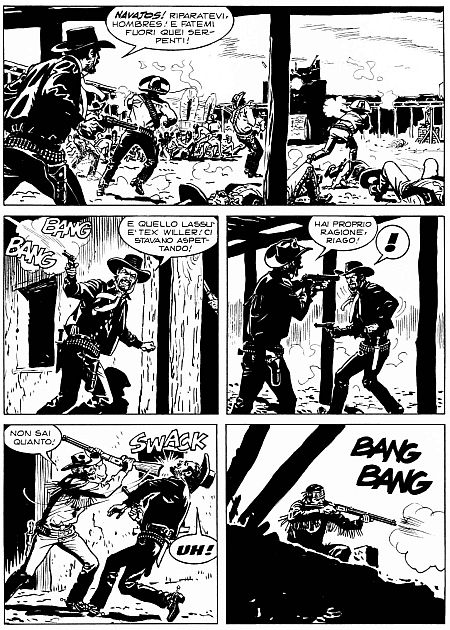 Tex Willer har mye interessant prat, og noen ganger litt for mye action (og skytescener).