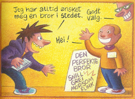 Historien begynner med en klassisk ønskeoppfyllelse: Hovedpersonen Fredrik finner en diger sekk med penger og bestemmer seg for å kjøpe en ny familie som kan skjemme ham bort og gi ham alt han vil ha, i kontrast til den familien han hadde fra før. Alle skjønner straks hvor historien går herfra, og hva moralen er, men på den andre siden blir ikke moralen hamret inn. Dette er selvsagt et stort pluss. Ousland er tydeligvis en tilhenger av «show, don’t tell»-metoden.