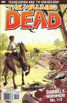 Jeg har allerede sagt hva jeg mener om selve serien, så for å unngå drøvtygging vil jeg heller fokusere om ulikhetene i formatet denne gangen. Egmont begynner med begynnelsen – Naturlig nok, da det bare ville medføre forvirring å fortsette der Apart Forlag slapp. De har også valgt å gjenbruke Hans Ivar Stordals utmerkete oversettelse og teksting fra i fjor. Designet er enkelt og iøyefallende, med stor logo og en lettfattelig coverillustrasjon. Robert Kirkmans forord er gjengitt, og neste nummer er behørig annonsert. Jeg skal innrømme at jeg stusset litt på over at det står med middels store bokstaver nederst på forsida: «Dobbeltnummer! Del 1 + 2». Som vi kan se av «neste nummer»-annonsen er nr. 2 også et «dobbeltnummer», og ettersom et «enkeltnummer» av dette bladet ville være på 26 sider, antar jeg at hvert eneste nummer kommer til å være et dobbeltnummer. Det virker dermed litt overflødig, men jeg antar at det er ment å være en veiledning til fans som vil være sikre på at de følger serien mest mulig kronologisk.