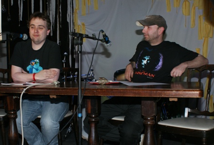 Arne Bye (t.v.) ble intervjuet av Stig Olsen. Her ble det et innblikk i Arne Byes tegneserier, og spesielt hans nyere album om Mira.