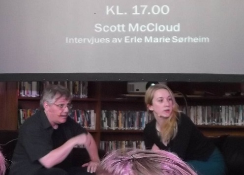 I løpet av ein times samtale med Sørheim førte McCloud oss igjennom si historie og utvikling som seriefan, serieteiknar og «entusiastisk amatør» (som han sjølv uttrykte det) på teikneserie-teorifeltet.