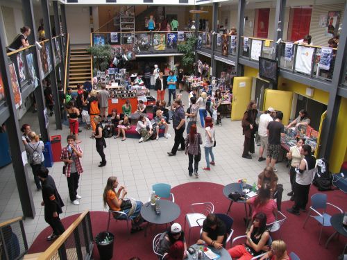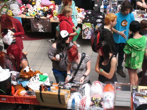 Myldrerommet utenfor kinosalen er som på de fleste festivaler. Der er det stands der man kan få kjøpt både tegneserier, DVD-plater, actionfigurer, byttekort, klær og mye annet. Og ja, det myldrer. Advík virker som en magnet på tsjekkiske cosplayere og mangainteresserte. Det er trangt om plassen.