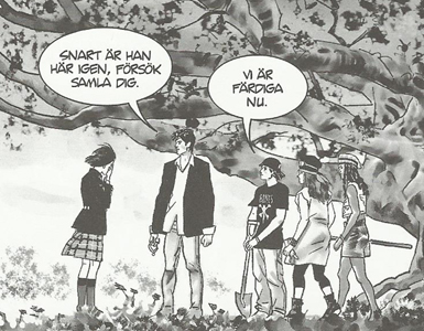 Bak den generelle tittelen «Vila i Frid» (hvil i fred) skjuler det seg en kompetent, overnaturlig detektivhistorie, ikke ulik det du kan se mye av på tv nå om dagen. Her blir vi raskt kjent med premisset: Dylan Dog en privatdetektiv i London (italienske serieskapere, i likhet med mange andre europeiske, er overbeviste om at spennende ting bare kan skje i engelskspråklige land) med det overnaturlige som spesialfelt. Historien som Eriksson har valgt er et klassisk «spøkelse som ikke kan komme seg videre til den andre siden»-dilemma. En gruppe ungdommer engasjerer Dylan for å hjelpe gjenferdet av en venninne. Kontrasten mellom denne historien og «En Seriemördares Bekännelser» kunne knapt vært større. «Vila i Frid» har klare, rene streker, og en historie som er direkte og lettfattelig. Fort hardkokte horror-fans er det lite å hente; her er det ingen busemenn, psykopater eller satanister, og ganske lite vold. Men mysteriet er passe engasjerende, og blir drevet fram av enkelte gode ideer.