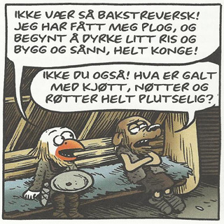 Uansett, han har nok inne på noe. Sekvensen blir mer gjennomført og konsekvent ved at han holder seg til tidsepoker der utviklingen (i alle fall her i Norden) gikk noe langsommere. I en serie som lenge har vært visuelt stillestående, er det historiske temaet også en velkommen måte å skape litt variasjon på. Poenget er uansett at Rocky alltid er seg selv lik, uansett tidsalder. Rockys kveruleringer, spissformuleringer og bisarre logiske resonnementer er like oppfinnsomme (og drøye), samme hvilken tidsepoke han befinner seg i. Ved å plassere ham i ulike tidsaldre gir Kellerman ham også rollen som den evig bakstreverske pessimisten som setter seg imot all utvikling. Også «Nåtidsstripene» handler om historie; i det hele tatt ser det ut som det var lettere å holde seg til tema denne gangen sammenliknet med forrige nummer.