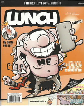 Sosiale medier er også månedens tema, og redaksjonen supplerer Børge Lund med rikelig med satirisk, redaksjonelt stoff rundt temaet. Av biserier er Wumo og Pophits fraværende i dette nummeret, muligens for å gi plass til presentasjonen av vinnerne fra Dagbladets tegneseriekonkurransen, inkludert noen mulige framtidige biserier. Ikke at jeg mener at Lunch bør bli et veldig strengt tematisk blad, men et par «work com»-serier (dvs. humorserier fra en arbeidsplass) til kunne de vurdere å ta inn. Konkurransen endte med å framheve to slike: «Post Apokalyptisk» av Einar Lunden (bronse) og «Retur» av Ingvild Marie Methi (hederlig omtale), selv om jeg har lest alt for lite av noen av dem til å vurdere kvaliteten. Men kanskje det uansett er på tide å gi vurdere et par nye serier. Av norske serier som allerede fins i bladet har «Storefri» av Marius Henriksen fått sin sjanse nå, men den er ganske kjedelig. Som vanlig er de svenske biseriene er de beste. «Lilla Berlin» kan minne litt om Rocky med sine bisarre, seinfeldske dialoger, men har det feminine perspektivet som gir den en viss grad av egenart.