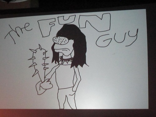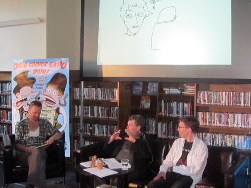 Men på Serieteket fredag kveld var han omgitt av beundrere som klappet og lo av alt han sa, selv om det snart viste seg at Peter Bagge var den som lo høyest selv. Kveldens utfordring var å lage konseptet til et nytt tegneserieblad, på sparket. Med seg hadde Bagge ordstyrer Flu Hartberg og den svenske serieskaperen David Liljemark. Ettersom Bagge har lang erfaring med å spille i band, gikk brainstormingen ganske snart i retning at en tegneserie om et band.