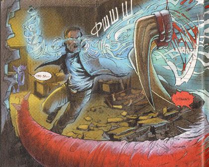 Det samme kan sies om “Krasnaya Furia” (Røde Furie), som minner meg mest om serier som Catwoman eller Black Widow. I første nummeret blir tyven Nika “rekruttert” til en internasjonal organisasjon som i første historien jakter på den hellige Gral. Røff i tegnestilen, med et team bestående av to barmfagre kvinner i tettsittende drakter, en engelsk lord med snikskytterrifle, en amerikaner med kamptrening, et teknisk geni og en “agent” som koordinator. Actionserie i en stil som kan minne om nåtidens Image-serier.