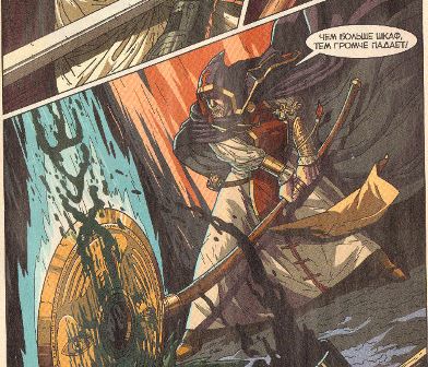 Serien som for meg er vanskeligst å prøve å forstå er “Inok” (Enok), delvis fordi den har ganske mye tekst, men mest fordi den springer frem og tilbake over århundrer – men med de samme hovedpersonene. Første hefte begynner i et slag i 1240, fortsetter i våre dager og springer så til Kiev i 940. Et senere hefte foregår under Napoleonskrigene, og har også med noen sider med bakgrunnsstoff om denne perioden. Tegnemessig ser denne serien ut til å være mer “alternativ” i stilen, men det er ulike tegnere og stiler i de to heftene jeg har, så dette kan se ut til å variere fra hefte til hefte. Dette er vel kanskje den av disse jeg aller helst kunne tenkt meg å lese på et annet språk, nettopp fordi den er blanding av action og historie.