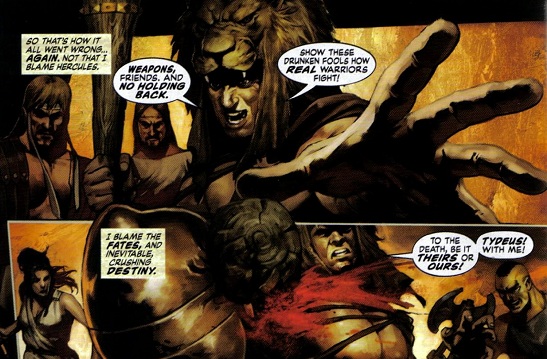 Spesielt karakteren Tydeus (Aksel Hennie sin rolle i filmen) er særs fengjande, med sin barbariske og einspora framferd. Ein skikkeleg scene-stjelar. Elles er kjende Herakles’ «kompisar» som Iolaus (Iolaos) og Autolycus (Autolykos), tjuvanes konge, med, samt krigerinna Atalanta og Meleander.