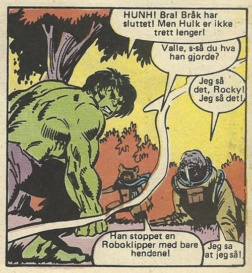 At Groot – på en måte – dukket opp i Marveluniverset samme år som Rocket Racoon er nok et pussig sammentreff. At Sal Buscema tegnet begge historiene jeg har omtalt her, er ikke fullt så pussig. Hulk var Buscemas personlige favoritt, og han tegnet figuren i ti år. Nordmenns bilde av Hulk er i stor grad definert av ham.