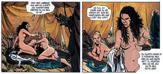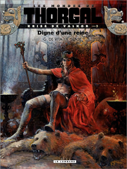 “En dronning verdig“ er tredje album av Thorgal-avløperen Kriss fra Valnor, som spinner videre på Kriss’ tilværelse etter at hun ble drept i album 28 av hovedserien. Ja, for døden skal vel ikke være noen hindring for nye historier om en så bra figur…? Jeg må innrømme at jeg var skeptisk til spinoff-produkter fra et av bladets beste biserier når nyhetene først ble annonsert for noen år siden. Jeg anså Van Hamme og Rosinskis belgiske albumserie Thorgal som et såpass personlig verk at det virket skurrende uten i det minste en av opphavsmennene bak roret. Men resultatet, spesielt for Kriss fra Valnor, har vært overraskende bra. Den krigerske, manipulative og skruppelløse (men likevel ikke helt skruppelløse) bueskytteren Kriss var alltid en av de mest fascinerende skikkelsene i Thorgals liv og univers, og serieskaperne Yves Sente og Giulio De Vita har skapt en verdig viderespinning.