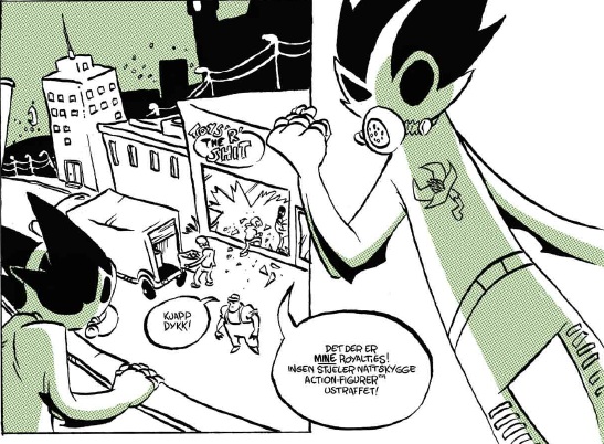 Faren med den framgangsmåten er at du kan ende med å fortape deg i satire og interne referanser. En stund ser det ut som Lindseth skal gjøre det. Han bruker første kapittel på å hamre inn hvor viktig royalties er for både Nattskygge og hans nye nemesis, og andre kapittel på å rekruttere en sidekick bare så han kan skape melodrama ved å la sidekicken bli drept. De fleste sjangerfans vil finne den vitsen temmelig gammel og slitt.