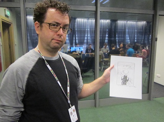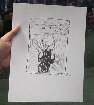 Arie Kaplan er først og fremst skribent, men driver også med vitsetegning. Her viser han fram en variant av Skrik (se utsnitt under)