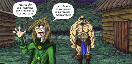 Våre to antihelter er gjenkjennelige typer fra fantasysjangeren: Per-Baren, en kåt, muskuløs idiot av en barbar som slåss fordi det er gøy, og fordi han alltid vinner. Luske-Lars er knivstikker og mestertyv, smidig som en katt, slu som en rev og svært lite tålmodig med Per-Barens idioti. Men han henger sammen med barbarkompisen sin likevel, fordi de lever i en verden full av farer – Og som sagt, Per-Baren slåss mot alt, og vinner over alt.
