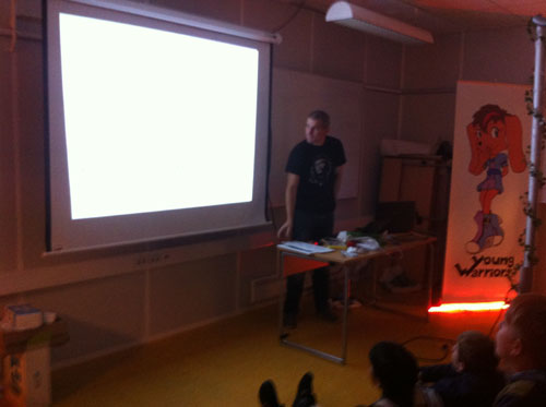 Apropos Facebook så har The Young Warriors’ Facebookside over 15 000 følgere. Serien virket da også populær blant de oppmøtte tilhørerne den kvelden. Et par ganger hendte det at Kevin fikk så mange spørsmål at han hadde vansker med å komme til orde. Riktignok var det bare satt ut 30 stoler på det lille møterommet i Kleppestø bibliotek, men oppmøtet var mye større. Mange måtte sitt på gulvet eller bordene.