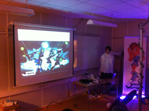 Dette er et konsept han tar på alvor. To raser prøver å kolonisere Kepler 22b (en virkelig planet som NASA har oppdaget, men som Kevin tar seg friheter med skildringen av); Den ene er kaninvesenene som ser ut til å spille hovedrollen, den andre er oss mennesker, som utforsker planeten i fjernstyrte robotkropper. En tredje, mer hundeaktig rase, representert ved den nye figuren Sapphire, ble introdusert denne kvelden. Kevin har vært opptatt av å gi navn og beskrivelser til alt, ikke minst romskipene. Han hadde med mange tegninger i kveld, og jobbet i en periode ganske intenst med en animasjonsprøve, men ingen egentlig tegneserie er påbegynt ennå. Kanskje blir det fortgang i denne prosessen snart, for i følge Kevins Facebookside vil lokalavisa Askøyværingen gjerne trykke The Young Warriors som stripe. Planen var ellers å gjøre den til nettserie først.