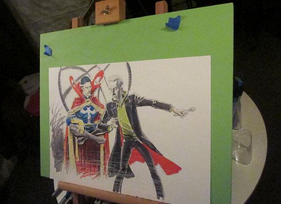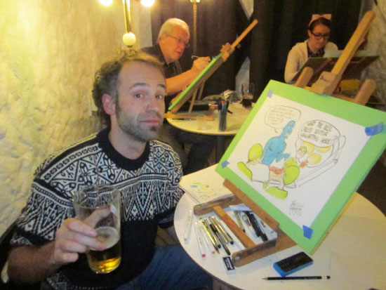 Kvelden var avslutta med Kristian Hellesunds nye påfunn, «Artist’s Club» der serieteiknarar blei inviterte til å teikne fritt med utgangspunkt i temaet «Doktoren i uvante omgjevnader». «Doktoren» i dette tilfellet var han frå Dr. Who, og i alle fall ein av teiknarane, Marcus L., lot ikkje heilt til å skjøne dette. Han teikna i staden Dr. Manhattan på operasjonsbordet, utan at nokon såg på det som eit problem. Dei andre teiknarane var Mike Collins, Knut Robert Knutsen, Torbjørn Lien og Ida Neverdahl. Teiknarane fekk god tid, og tok seg god tid. “Klubben” og dens første møte resulterte i svært gode resultat som seinare skal auksjonerast bort til inntekt for naudstilte på Gaza.