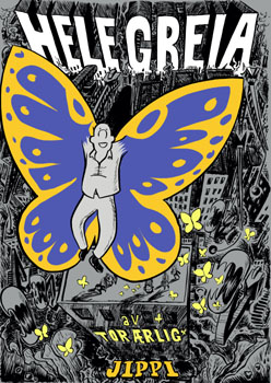 Tor Erling Naas, alias Tor Ærlig, er kjent for sine grafiske romaner – Dvs. tegneseriebøker med en sammenhengende historie som består av mange bilder og mange ord. I Apefjes-bøkene sto han bare for prosatekst. Kanskje var det behovet for å prøve noe nytt, for gå i stikk motsatt retning etter Apefjes-serien, som drev han til å tegne en surrealistisk tegneseriefabel helt uten dialog. Han har kalt den «Hele Greia»