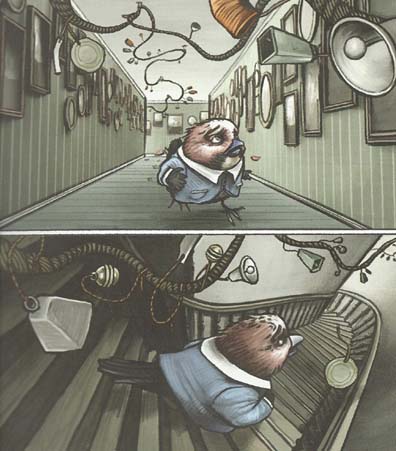 «Jaybird» er en fabel fra et ekstremt lukket univers, bestående bare av den lille fuglen Jaybird, en fredelig liten edderkopp som tasler omkring, og Jaybirds syke mor. Der ute fins det slemme fugler, forteller Jaybirds mor ham, og maler fram halvabstrakte, marerittaktige bilder av militære rovfugler for leserne. Derfor har de barrikadert seg inne i dette gamle huset, og derfor må de være så forsiktige og stille. Jaybird tror henne, og ser med ærefrykt opp på endeløse rekker familieportretter av forfedre.