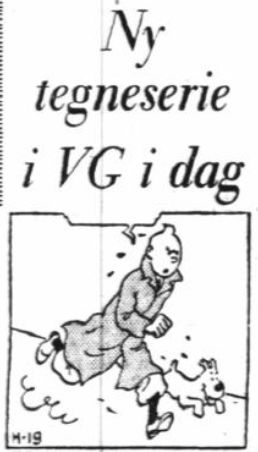 Det er på førstesiden av VG 22. september 1953 vi finner Tintin for første gang i avisen. Redaksjonen må ha ment at tegneserien var et blikkfang, og det var ingen dårlig attest Tintin fikk. Han ble kalt “en mangfoldig journalist som har en egen evne til å rote seg opp i snurrige situasjoner”. Og det var ikke kvaliteten det stod på. VG kunne forsikre at Tintin var “en hyggelig tegneserie”.