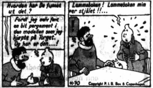 Det må ha vært rart å lese Tintin som føljetong. Frem til november 1954 ble albumene Enhjørningens hemmelighet og Rackham den rødes skatt trykt. I SEMICs norske utgave av albumene fra 1986 snakker vi om 124 albumsider med handling. For en som er vant til å lese historiene i albumform, virker avispubliseringen temmelig oppstykket. I tillegg mangler den de små resyméene vi stadig finner i en typisk handlingsdrevet avistegneserie som Fantomet.