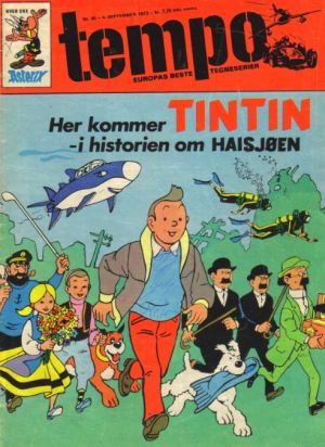 Forsiden til Tempo nr. 36/1973. Her startet “Tintin og Haisjøen” som føljetong.