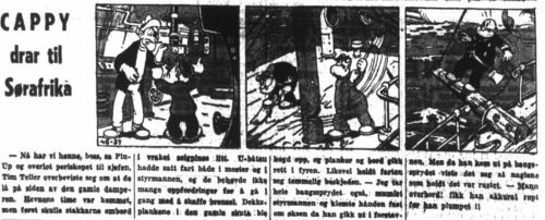 Cappy Dick på vei til Sør-Afrika. Sjømannen selv opptrer i siste rute i denne stripen.