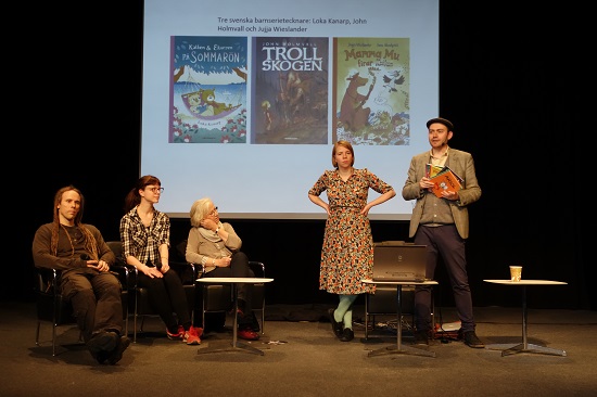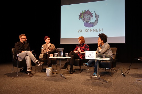 Ellen Ekmans (andre f.h.) serie om hipstermiljøet i Sverige, Lilla Berlin, er etter hvert ganske godt kjent også i Norge. Ekman sier selv at byen der serien foregår er en amalgam av mange svenske storbyer. Derimot er det ingen tvil om hvor serien Stockholmsnatt – også den med et urbanist/hipstertema – er ment å foregå. Serien går i Svenska Dagbladet hver fredag, og feirer ti års jubileum med en komplett samlebok. Stefan Thungren (andre f.v.) skriver serien mens Pelle Forshed (første f.v.) tegner.