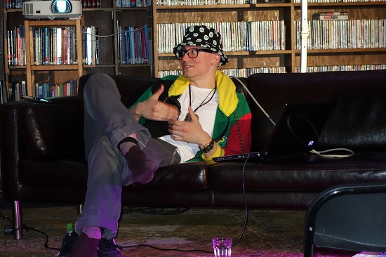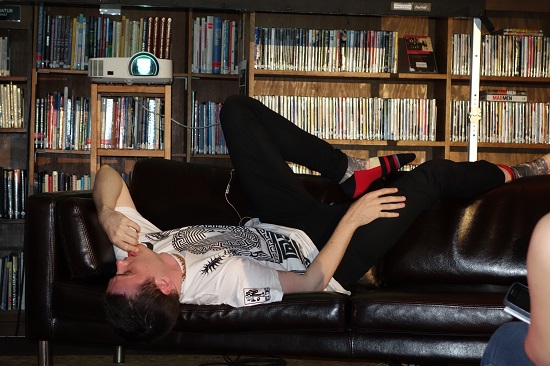 Simon Hanselmann var (sammen med Ed Piskor) den mest prominente utenlandske gjesten på årets festival. Her gjorde seg bedagelig på sofaen da han hadde opptreden fredag kveld, og demonstrerte «hot shave» på et tidspunkt («it really works!»). For øvrig beklaget han at han ikke var iført de mye omtalte kvinneklærne sine, men hans synes bare det var litt for varm til det.
