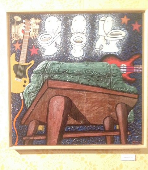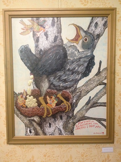 Utstillingen åpnet i forbindelse med nypremieren på Nielsens “Verdiløse Menn”, et teaterstykke inspirert av broren Jokkes (Joachim Nielsen) tekster og melodier. Det er likevel en utstilling som er verdt å få med seg om man sitter pris på Nilsens visuelle uttrykk. Den inneholder portretter av karakterene i stykket men også tegninger, en stripe og malerier med en samfunnssatirisk brodd.