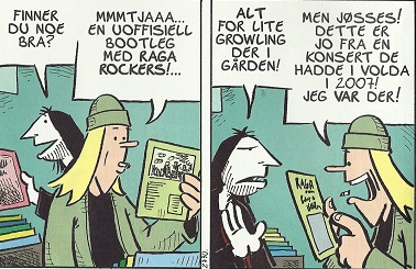 Øystein N: Usikker på hva du mener. RR spilte i Volda i 2007, og denne stripa refererer til noe jeg selv opplevde på den konserten. Stripa er forøvrig mitt bidrag til den mye omtalte RR-boksen som “alle” synes å være med på :)
