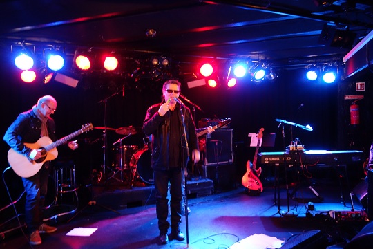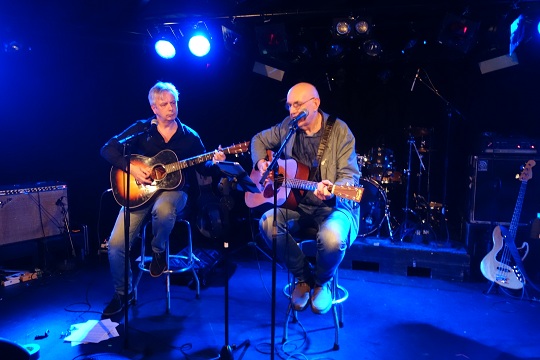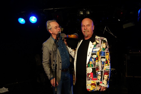 Fordi Garage hadde arrangementet midt i uka, begynte de musikalske innslagene tidlig og fulgte det oppsatte programmet nøye. Den bergenske new wave/punk-pioneren Svein Hovland (f.v.) fra bandet Gjennomslag og Helge Grønhaug fra det erkebergenske bandet De Musikalske Dvergene fikk framføre to låter hver som oppvarming til UPF.