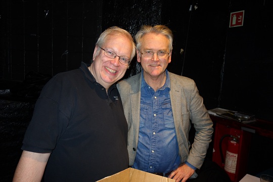Mike Collins (f.v.) og Gunnar Staalesen har hatt et langvarig samarbeid om Varg Veum. I går signerte de begge julehefter på Garage
