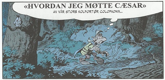 Først i det 36. albumet er altså Julius Cæsars historisk berømte verk «Kommentarer til Gallerkrigen» (også kjent bare som «Gallerkrigen») blitt tema i et Asterix-historie. Teamet Ferri/Conrads andre Asterix-album begynner med at Cæsar diskuterer denne boka med forleggeren Aschemanus. I tråd med portretteringen av Cæsar som den hederlige tyrannen, vil han motvillig ta med historien om den uovervinnelige gallerlandsbyen, før Achemanus overtaler han til å stryke den delen. Men en kopi av den «usensurerte» versjonen lekker ut, og selvsagt kommer den i hendene på landsbyen det er snakk om, takket være nyhetskolportøren (journalisten) Colophonix. Men han har romerne hakk i hæl…