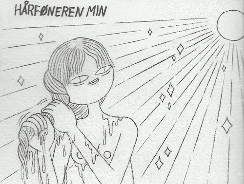 Men det er neppe tilfeldig at Ida Neverdahls «Sulten» opnar antologien. Neverdahl sin popularitet er aukande, og for denne serien fekk ho sølvplass i Oulu-festivalen i Finland. “Sulten” handlar om kroppspress, og Neverdahl bruker både burlesk og malerisk symbolikk for å illustrere temaet. Eit fascinerande skode med ein bodskap som ikkje er til å ta feil av.