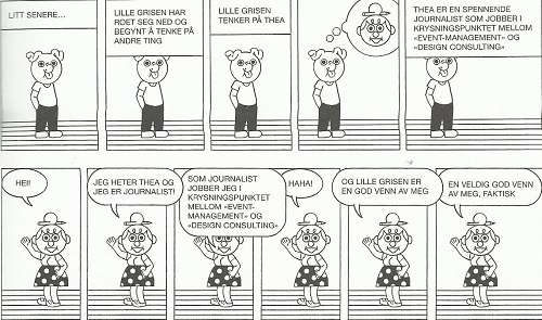 Tim Ng Tvedt, ein annan av årets solodebutantar, har to bidrag: I «Gode utleiemuligheter» kjører han same «arkitektonisk leik»-stilen som i debuten Omrokering, men i «Utdrag frå Lille Grisen» eksperimenterer han med monotoni og kopiering, både i tekst og teikning. Ein kan saktens spørje seg om kva Tvedt skal gjere viss han går tom for nye uttrykksformar, men enn så lenge er han ein av våre mest spanande og originale unge serieskaparar.