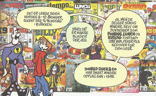 Hvor er tegneseriens norske historie, gjennom ukeblad, som Hjemmet med Knoll og Tott, Fiinbeck og Fia, Bob og Frank i Afrika, Tarzan, Blondie, og den danske Barna på sydhavsøya, Norsk Ukeblad med 91 Stomperud, Lyn Gordon, Tom Pus, Donald Duck. Illustrert med Tom Trick, Kalle K. , Bamse, Nils og Blåmann? Ja, det var ukebladene som ga tegneseriens historie i Norge, la oss ikke glemme det, og bygge opp under uvitenheten!