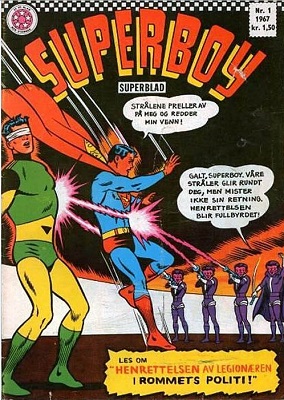 Så fortsetter boken, ikke med gamle Lynvingen, men rett til 1967 og første nummer av «Superboy». Dette er en av «stayerne» i norsk superseriehistorie, og i bibliografien kan vi lese at Superboy kom ut med ca. 140 hefter (!) over omtrent 13 år.