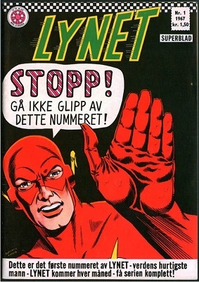 Lynet #1 har en av datidens mest klassiske omslag; Helten snakker direkte til leseren og sier: «Stopp! Ikke gå glipp av dette heftet!» og jeg husker det godt fra min ungdom :-). Man fikk mye for kr. 1,50 på den tiden, her kan man kose seg med ikke mindre enn 3 Infantino-historier om Lynet. Bladet hadde dessverre ikke samme overlevelsesevne som Superboy, og fikk bare tre (gode) år i Norge.