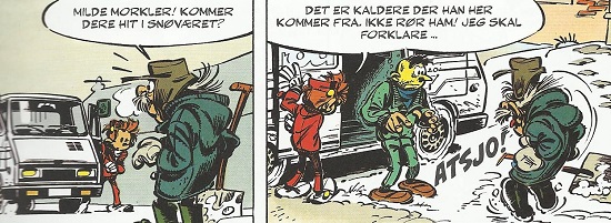 Boken er sikkert grei nok i seg selv, men nå er det jo sånn at Zoom allerede har gitt ut en utgave i både Danmark og Sverige som er mer enn 100 sider tykkere, pga. at den inneholder mer ekstramateriale og en hel haug korte historier. Flere av disse korte historiene har aldri kommet ut på norsk så vidt jeg kjenner til, inkludert Tome & Janrys aller første Sprint-fortelling (en 8-sider der Sprint og Kvikk hjelper en uvanlig intelligent sjimpanse på rømmen fra en militær forskningslab), og noen Viggo-striper de laget. Jeg synes det er dårlig gjort at forlaget kutter alt dette fra den norske utgaven, for det blir vel lenge til neste gang noen har sjansen til å gi ut de tingene på norsk.