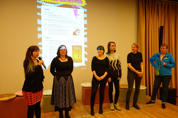 Dette er andre året. Første gangen, i 2015, hadde vi det her på Stadsbiblioteket, som i år. Da hadde vi 500 besøkende totalt. Vi tror vi kan overgå det besøkstallet i år. I år har vi dessuten to gjester – Sara Granér og Tony Cronstam – og det er nytt av året. Forrige året fokuserte vi bare på selve messen, og hadde ikke gjester. Bordene er gratis, og de som sitter her ofrer bare av sin tid. Å tilby tegnerne gratis bord er en viktig del av arrangementet, så alle kan delta uansett økonomi. Bordene tok slutt fem timer etter at vi annonserte, og det beviser jo også at behovet for et arrangement som Seriefest fins.