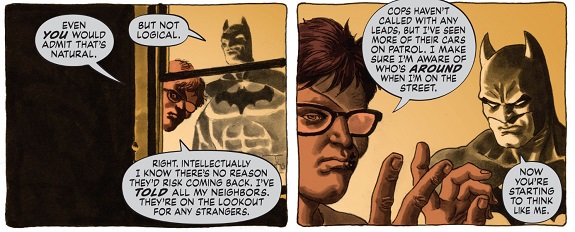 Det er også veldig uvanlig at en tegneserieforfatter utbroderer sin livshistorie ved å sette det hele i relieff til en superhelt. The New 52 som kom i 2011, var åpenbart ment som en pengemaskin. Batman på kino er også milliardinntekt, og mange superheltskapere ønsker å konkurrere. Dark Night- A True Batman Story er derimot en smal tegneseriefortelling, av en pioner blant Batman-forfattere. Og den fortjener absolutt en gjennomlesing denne sommeren.