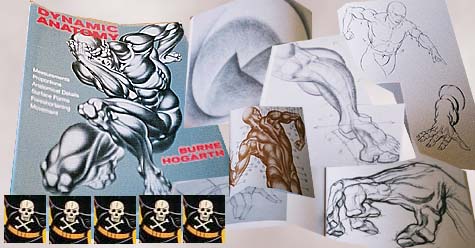 Den bästa boken som kanske finns, tror jag, som används såvitt jag vet på tecknarskolor, iallafall rekommenderas av dem, är Dynamic Anatomy av Burne Hogarth. Den har ingenting med superhjältar att göra men figurerna är lagom nakna för att trä på dem trikåer utan att man ska behöva rodna. Många uppforstorade bilder ägnas åt varje del på kroppen (utom de intima då) blandat konstverk av t ex Picasso och Matisse. Kan man den här boken utantill så kan man allt. Kanske inte perspektiveteckningar då, men de får man lära sig från enklare verk som Visual Storytellng ovan.