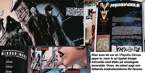 Kiss är ganska bra framställda som någon slags Vertigo-variant. Demonen, stjärnbarnet, Space Ace och Katten är inte desamma som i Marvel-versionerna, men man har löst det bra, upplägget med vanskapta barn bl a är mörkare. Det enda jag kan anmärka på är att konceptet inte är något som har att göra med den tillhörande CD’n och turnén Psycho Circus, något som vid inköpstillfället av tidningen gjorde mig förvirrad.