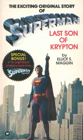 Att det var bättre när film och serier var helt åtskilda. Och vad gjorde det att romanen som släpptes samtidigt som Superman the Movie var någonting helt annat skrivet av Elliott S. Maggin? I Sverige kallades boken Superman kort och gott, och den följde samma continuity som serierna, där Clark Kents chef var Morgan Edge och han jobbade på TV-stationen WGBS.