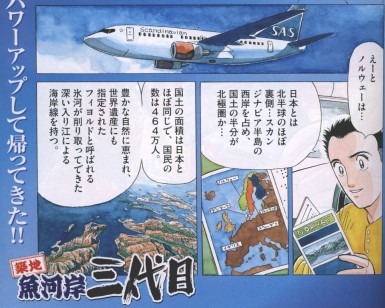 Serien har en lang tittel som kan oversettes med “Tsubasa fiskemarked – 3. generasjon”, har gått i over 150 avsnitt i bladet “Big Comics (Comics for men)” og en av hovedpersonene er en tidligere bankansatt som overtar farens (eller svigerfarens?) fiskeutsalg. Da denne sekvensen begynner får han en telefon fra far (eller svigerfar) fra Bergen, og blir bedt om å komme over for å se på fiskeri og fiskeoppdrett i Norge.